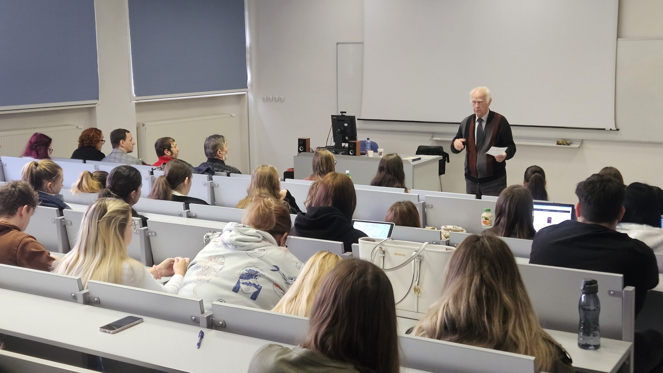 Prednášal prof. PhDr. Ján Kačala, DrSc., významný slovenský jazykovedec, autor viacerých monografií, štúdií, článkov z oblasti skladby slovenského jazyka, lexikológie, jazykovej kultúry.